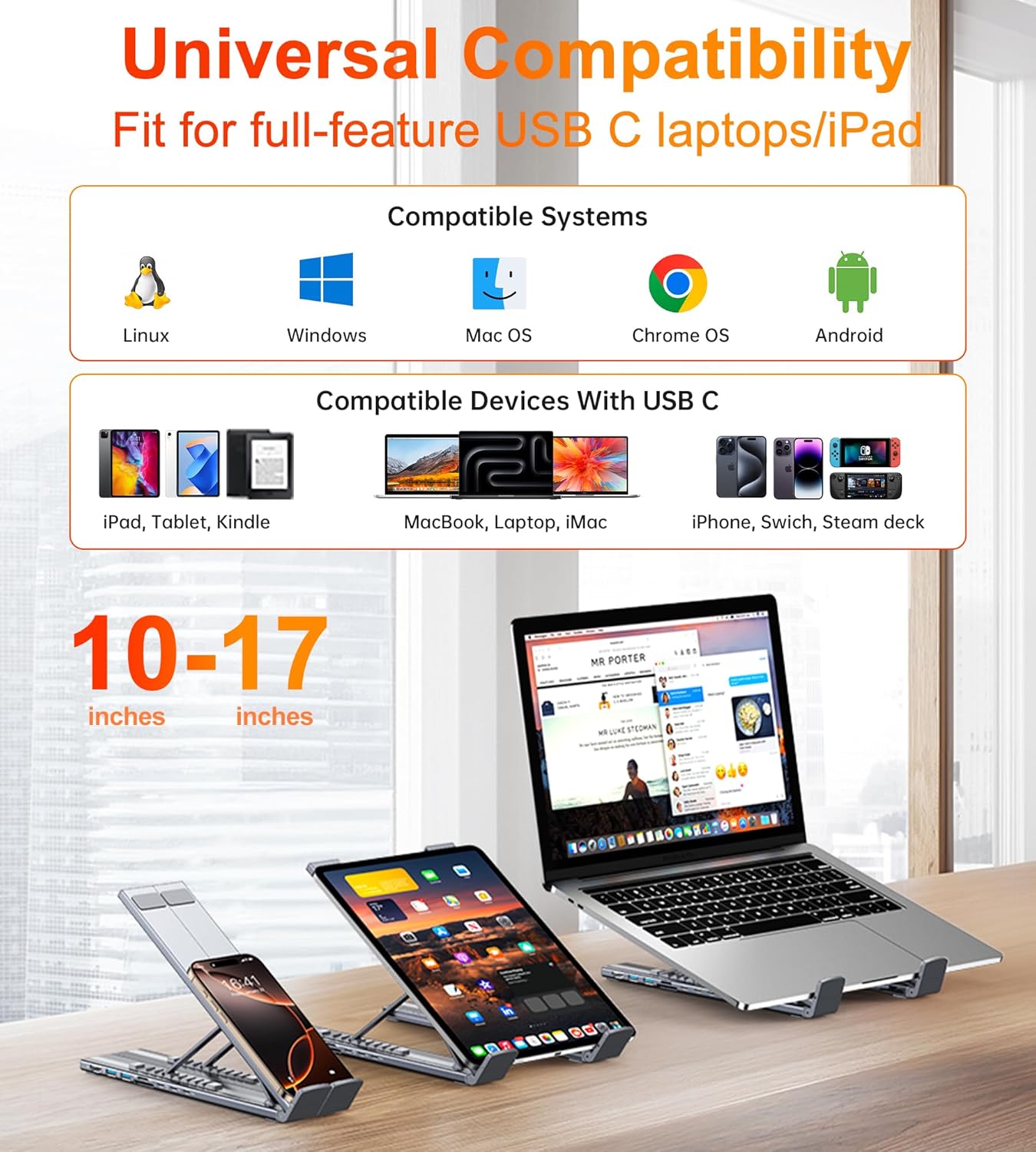 Transform your laptop into a powerful workstation with this universal 13-in-1 docking station. Perfectly compatible with MacBook, Surface, Dell, HP, Lenovo, and more — it’s built for multitasking, creative workflows, and seamless device connectivity.